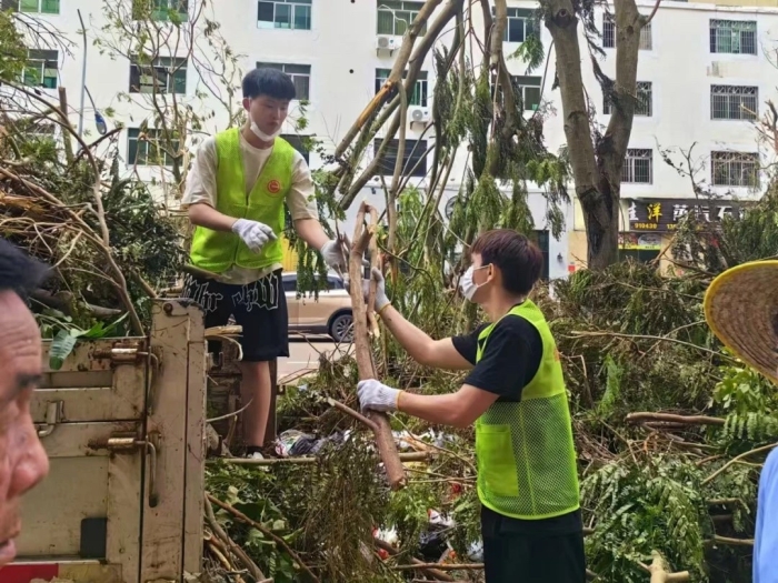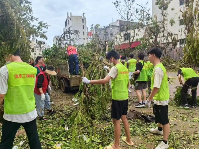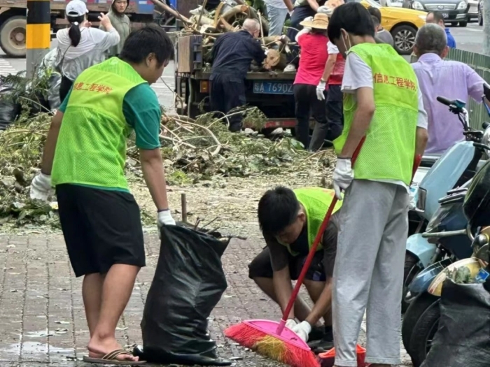 台风“摩羯”的肆虐给我们的生活带来了巨大的冲击。清理工作是灾后重建的第一步。2024年9月10日上午,信息工程学院的志愿者们在团支总书记徐百慧的带领下,配合学校周边社区,在兴丹路各处进行灾后重建工作。