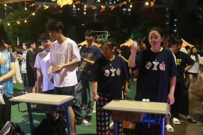 主舞台两侧的“桃李满园”打卡区和“荣光接力”挑战区同样人气爆棚。在“桃李满园”打卡区,学生们纷纷与老师、校园标志性建筑合影,并在留言板写下对学校和师长的祝福,领取限量定制徽章。而“荣光接力”挑战区的7个游戏点位前更是排起长队:“翻杯接球挑战”考验反应速度,“车标大挑战”趣味十足,“乒乒乓乓大作战”融合多种玩法,吸引众多学子参与。参与者通过挑战集满8个印章,即可兑换精美礼品,现场欢声笑语不断。